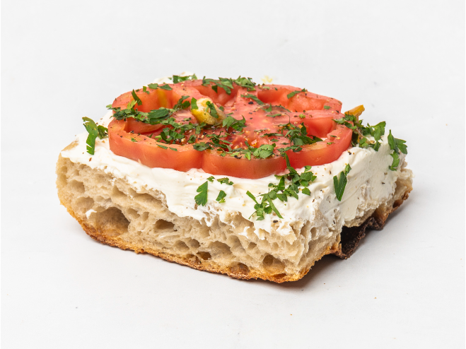 „Len“ voda, múka, soľ, kvások, tie najkvalitnejšie talianske šunky, syry a vlastné pestá a dresing – Ciao! Focaccia – náš signature produkt… Každé ráno na vás čaká vitrína plná raňajkových „open fokáč“, čiže obložená focaccia ideálna na raňajky, pre každého, kto si rád pochutná na tenučkom cotte, ale aj pre tých, ktorí radšej siahnu po rastlinnej verzii. Sezónnosť je pre nás kľúčová, preto každé ráno nájdeš na focacci to, čo ponúka tržnica.