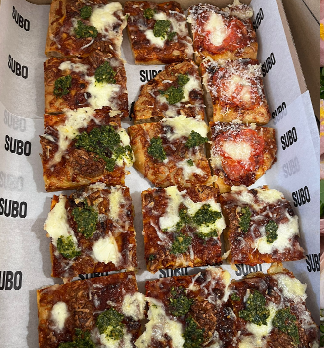 • Rímska focaccia / pizza – napríklad Margherita, Chorizo Hot Honey, Pepperoni.